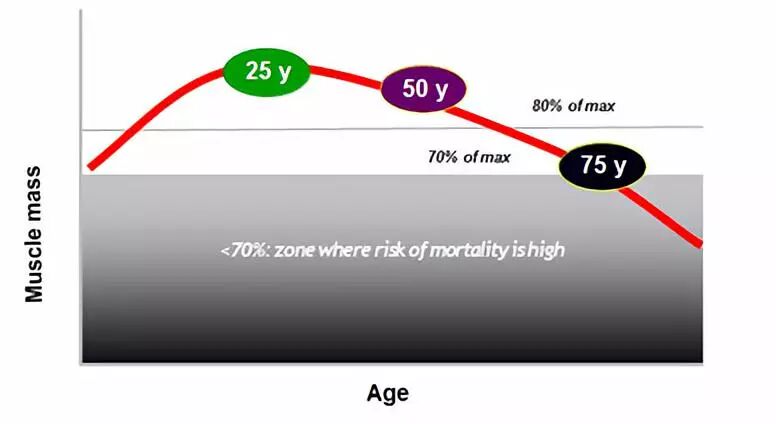 肌肉衰减综合征是随年龄增加而逐渐出现的一种生理性改变,指肌肉质量和功能的下降。人体在40岁左右开始出现肌肉量的减少,在70岁以前每十年大概丢失约8%,此后肌肉丢失的速度明显增快,可达每十年15%。在60~70岁的人群中少肌症的发生率为5%~13%,而在80岁以上人群中则为11%~50%。